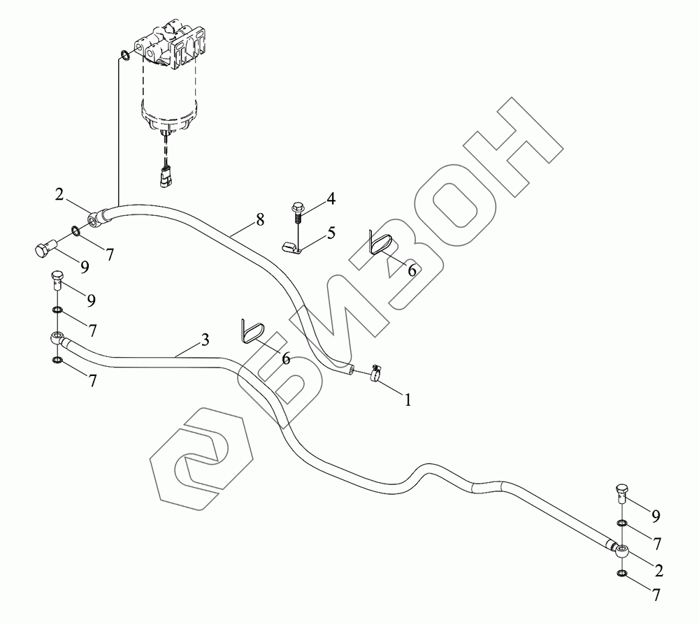 Графический каталог запасных частей к технике: LOVOL TR1SA1504-005K. Топливопроводы