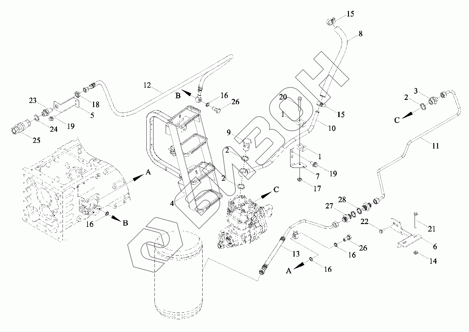 Графический каталог запасных частей к технике: LOVOL TR2SA2004-002K. Газопровод