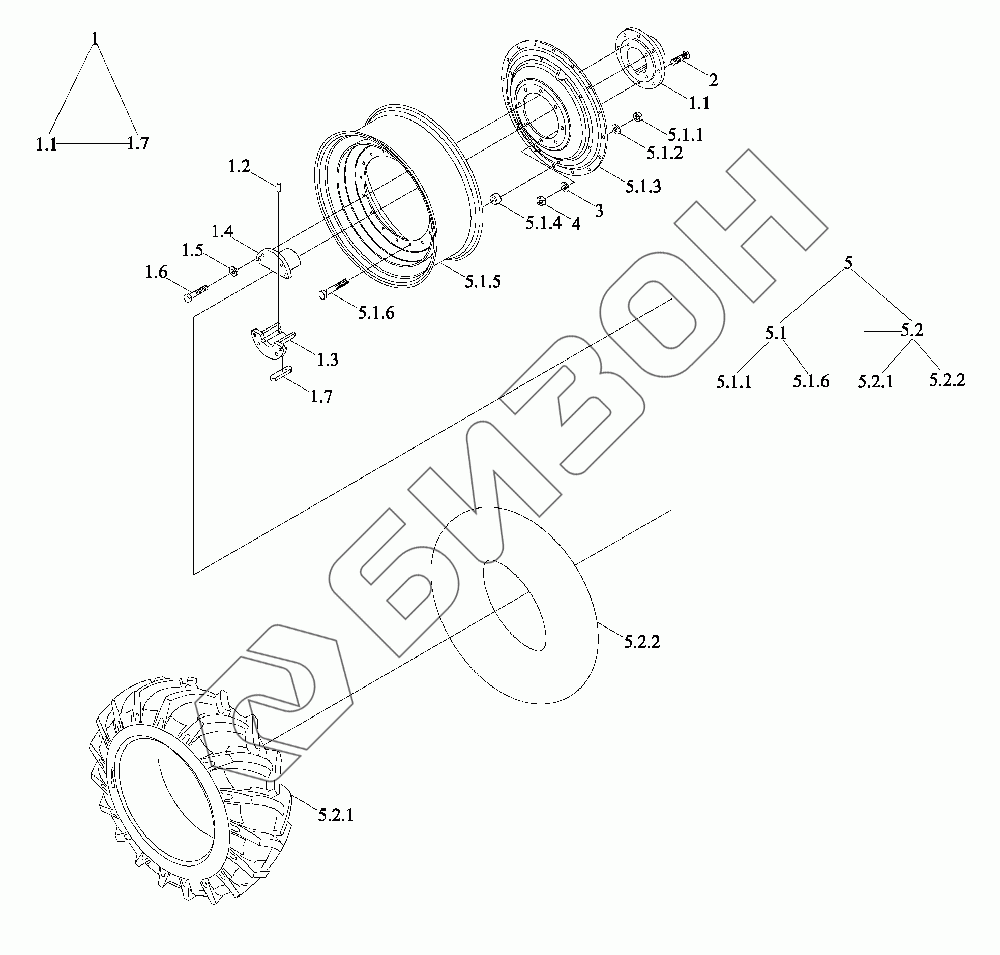 Графический каталог запасных частей к технике: LOVOL TR2SA2004-002K. Заднее колесо 1