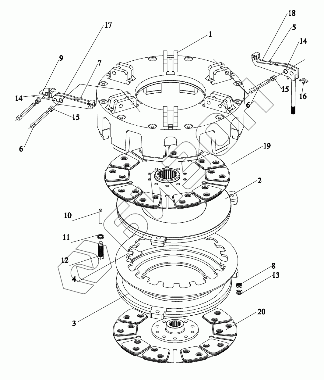 Графический каталог запасных частей к технике: LOVOL TR2SA2004-002K. Сцепление