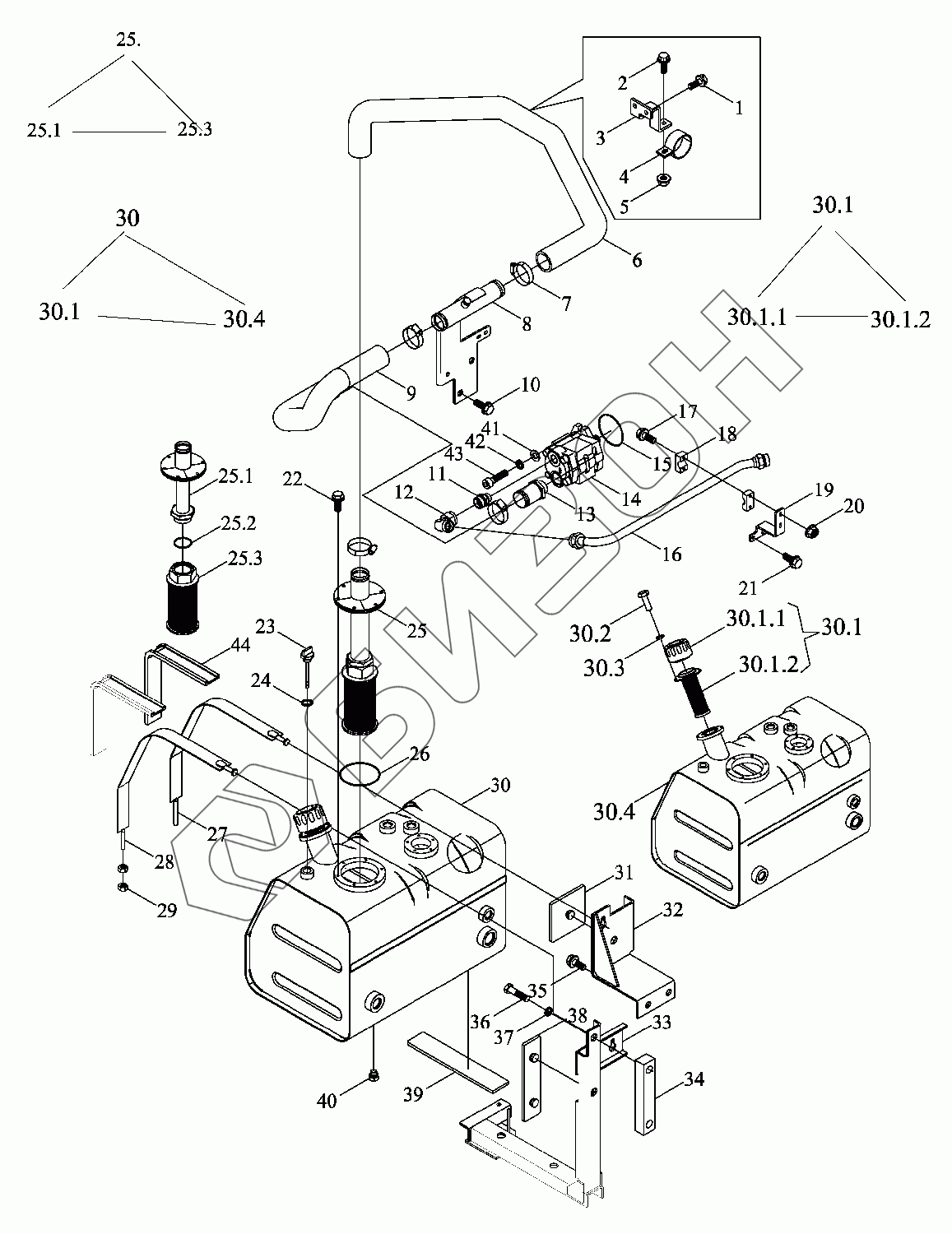 Графический каталог запасных частей к технике: LOVOL TR2SA2204-001K. Гидросистема