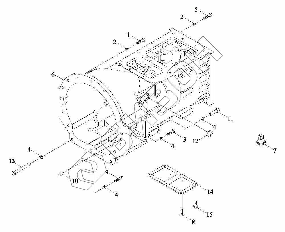 Графический каталог запасных частей к технике: LOVOL TR2SA2204-001K. Корпус коробки скоростей