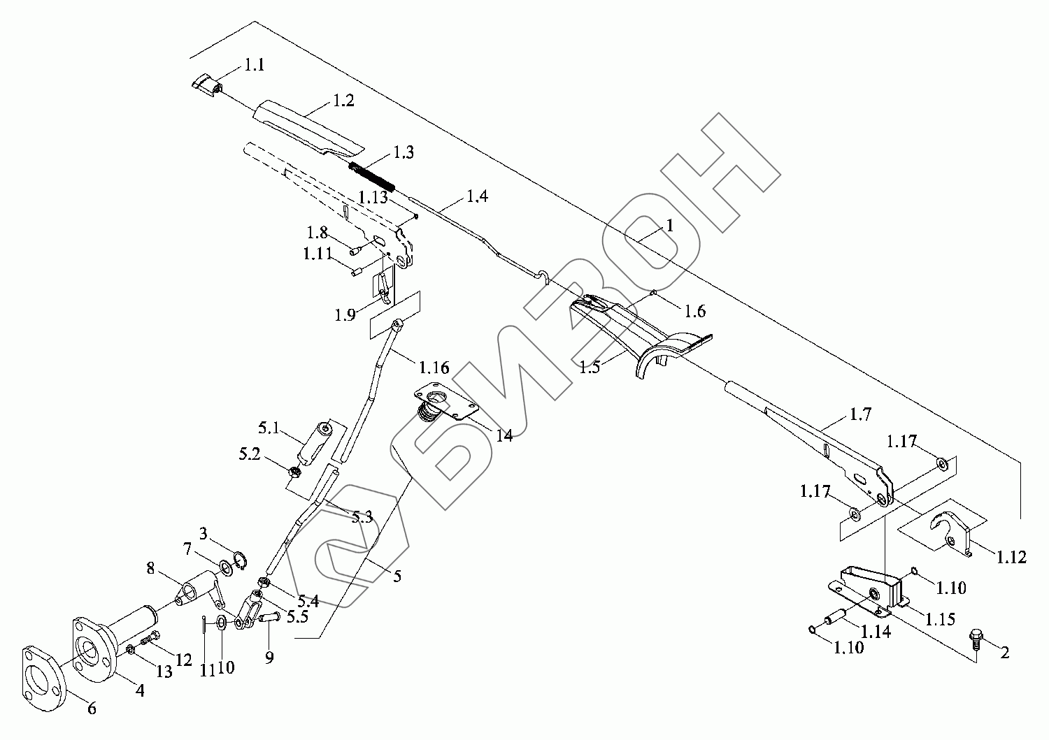 Графический каталог запасных частей к технике: LOVOL TR2SA2204-001K. Механизм управления 1