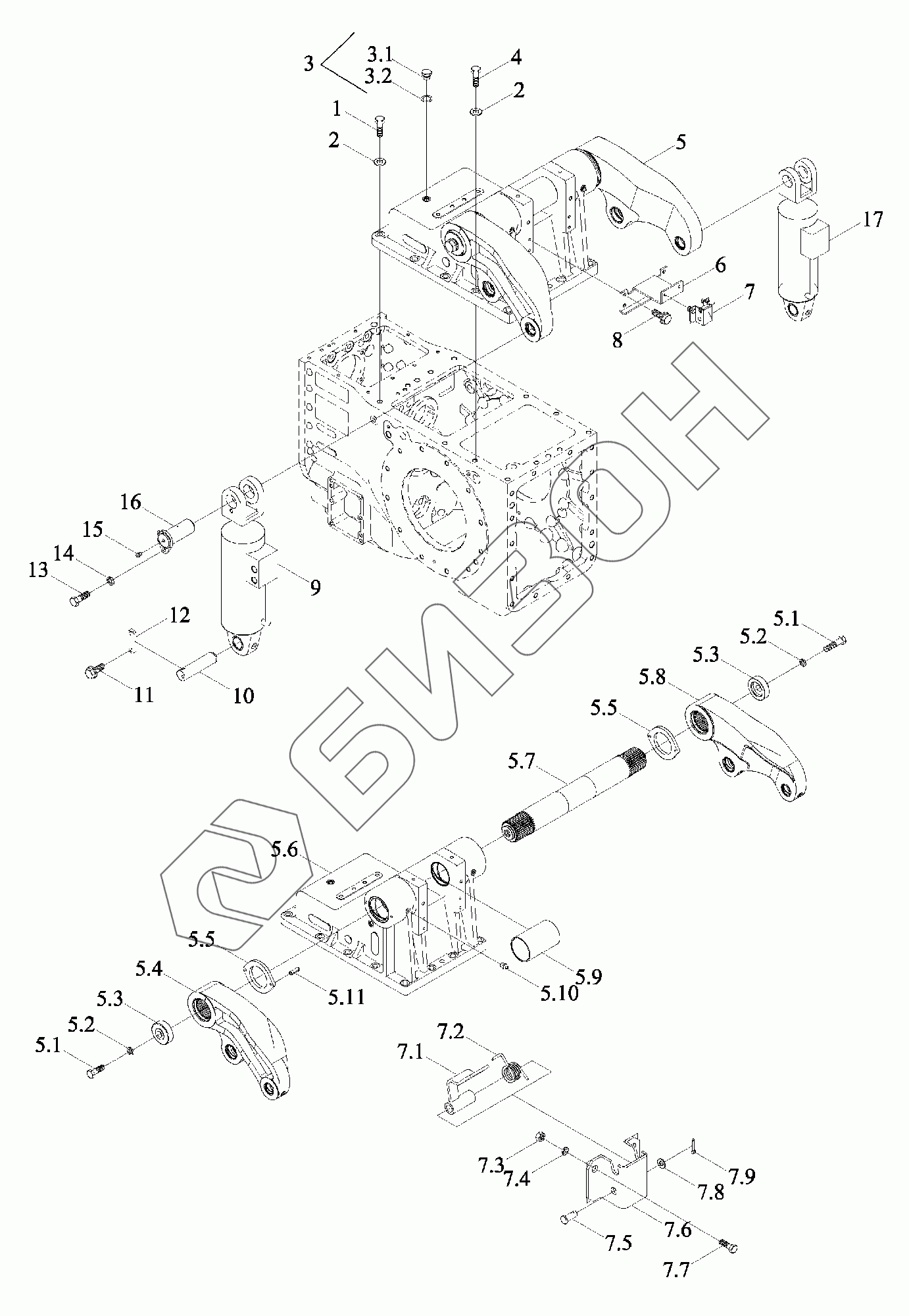 Графический каталог запасных частей к технике: LOVOL TR2SA2204-001K. Подъёмное устройство