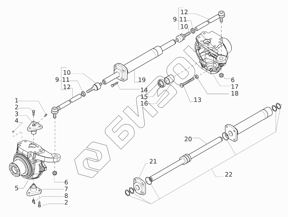 Графический каталог запасных частей к технике: LOVOL TR2SA2204-001K. Цапфы, тяги, гидроцилиндр