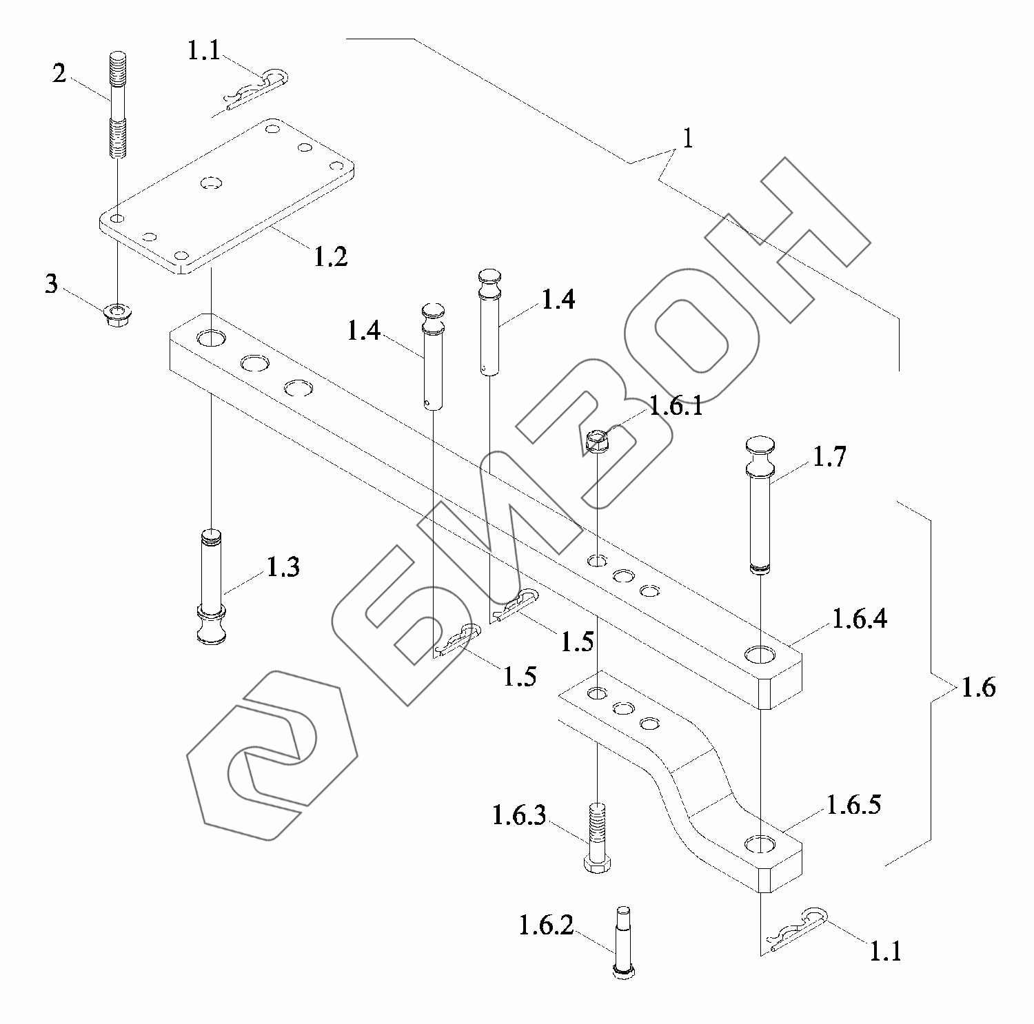 Графический каталог запасных частей к технике: LOVOL TR2SA2204-001K. Тяговая установка