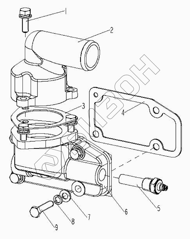 Графический каталог запасных частей к технике: LOVOL TY3SA854-008K. Корпус термостата