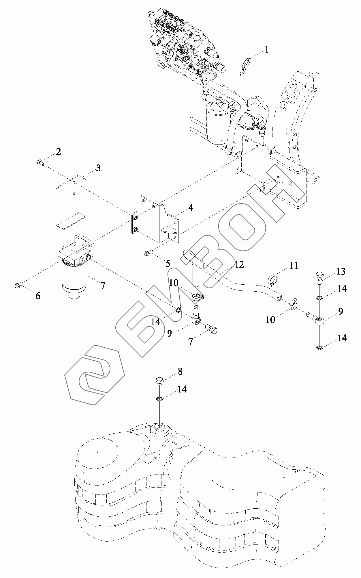 Графический каталог запасных частей к технике: LOVOL TY3SA854-008K. Маслопровод, фильтр