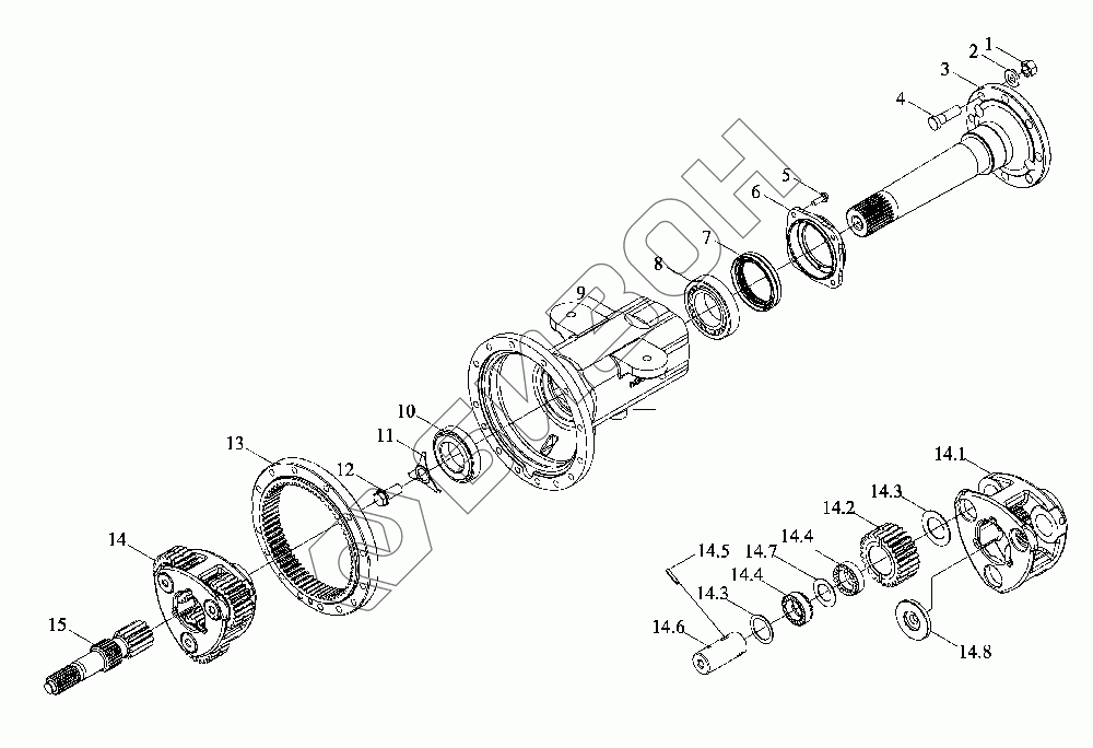Графический каталог запасных частей к технике: LOVOL TY3SA854-008K. Правая конечная передача