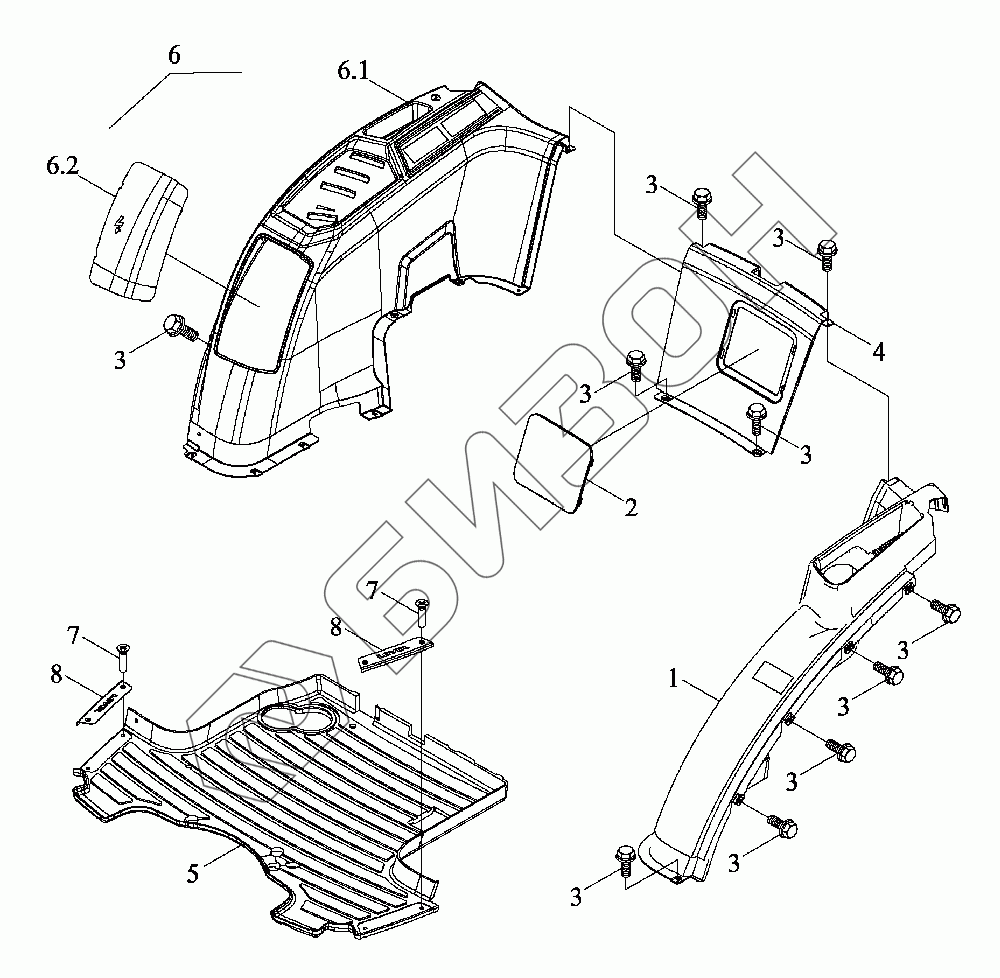 Графический каталог запасных частей к технике: LOVOL TY3SA854-008K. Внутренний молдинг 2