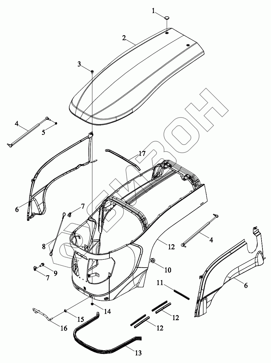 Графический каталог запасных частей к технике: LOVOL TY3SA854-008K. Капот