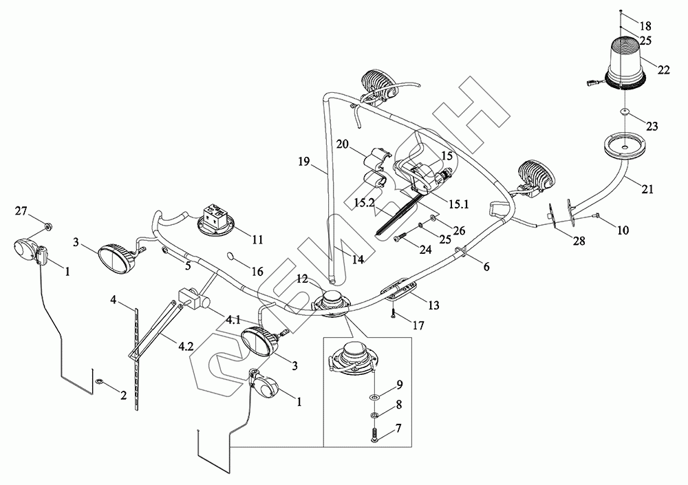Графический каталог запасных частей к технике: LOVOL TY3SA854-008K. Монтажный блок жгута проводов верхнего освещения