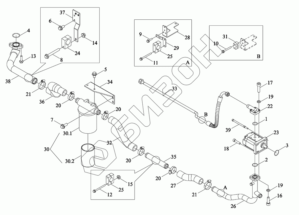 Графический каталог запасных частей к технике: LOVOL TY3SA854-008K. Насос масляный, фильтр
