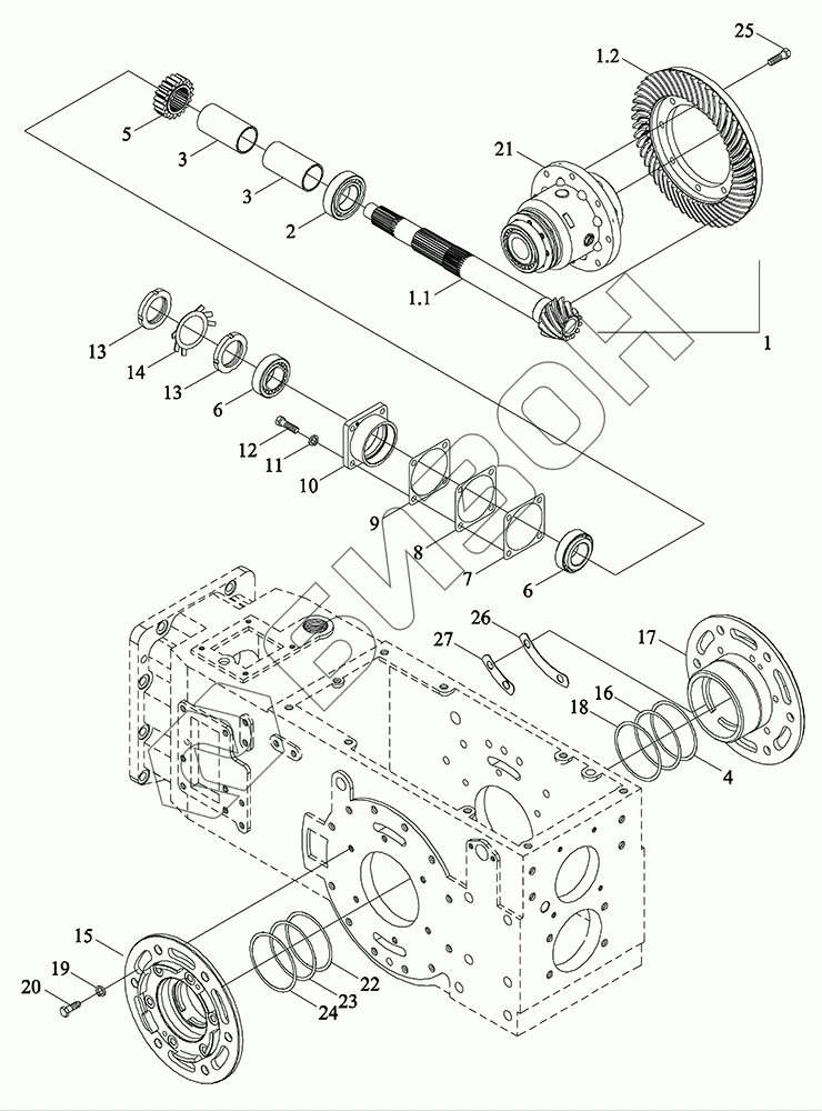 Графический каталог запасных частей к технике: LOVOL TY3SA854-008K. Задняя центральная передача