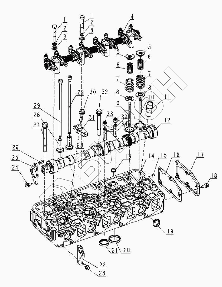 Графический каталог запасных частей к технике: LOVOL TY3SA854-017K. Головка блока цилиндров