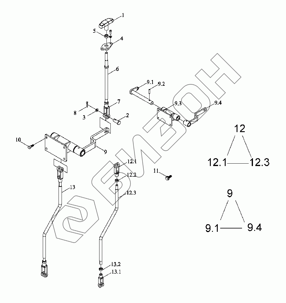 Графический каталог запасных частей к технике: LOVOL TY3SA854-017K. Механизм управления раздаточной коробкой