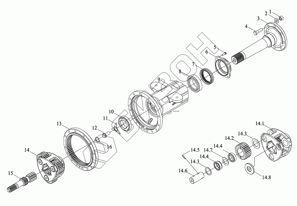 Графический каталог запасных частей к технике: LOVOL TY3SA854-017K. Правая конечная передача