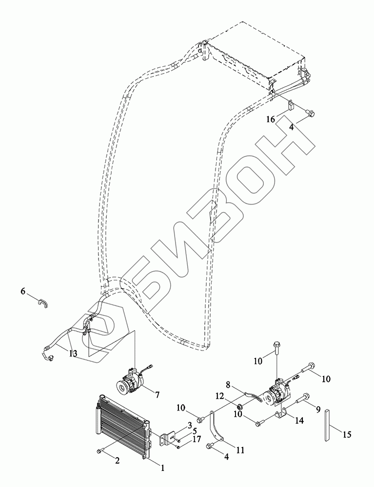 Графический каталог запасных частей к технике: LOVOL TY3SA854-017K. Система кондиционирования воздуха - двигатель