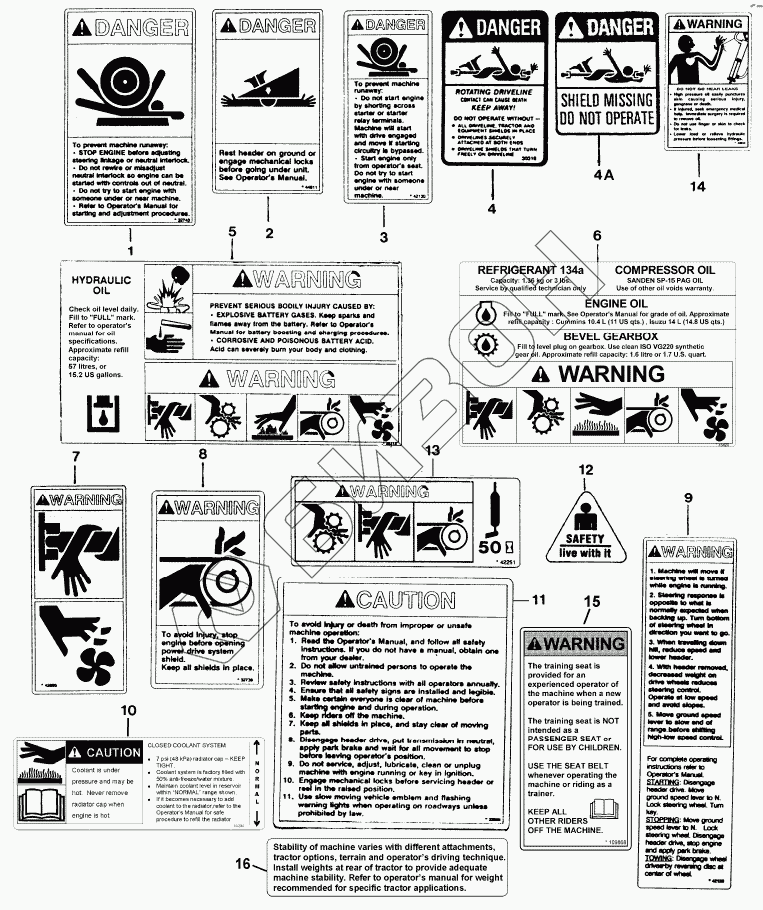 | 15 | 109868 | DECAL – WARNING(TRAINING SEAT AND SEAT BELTS) |