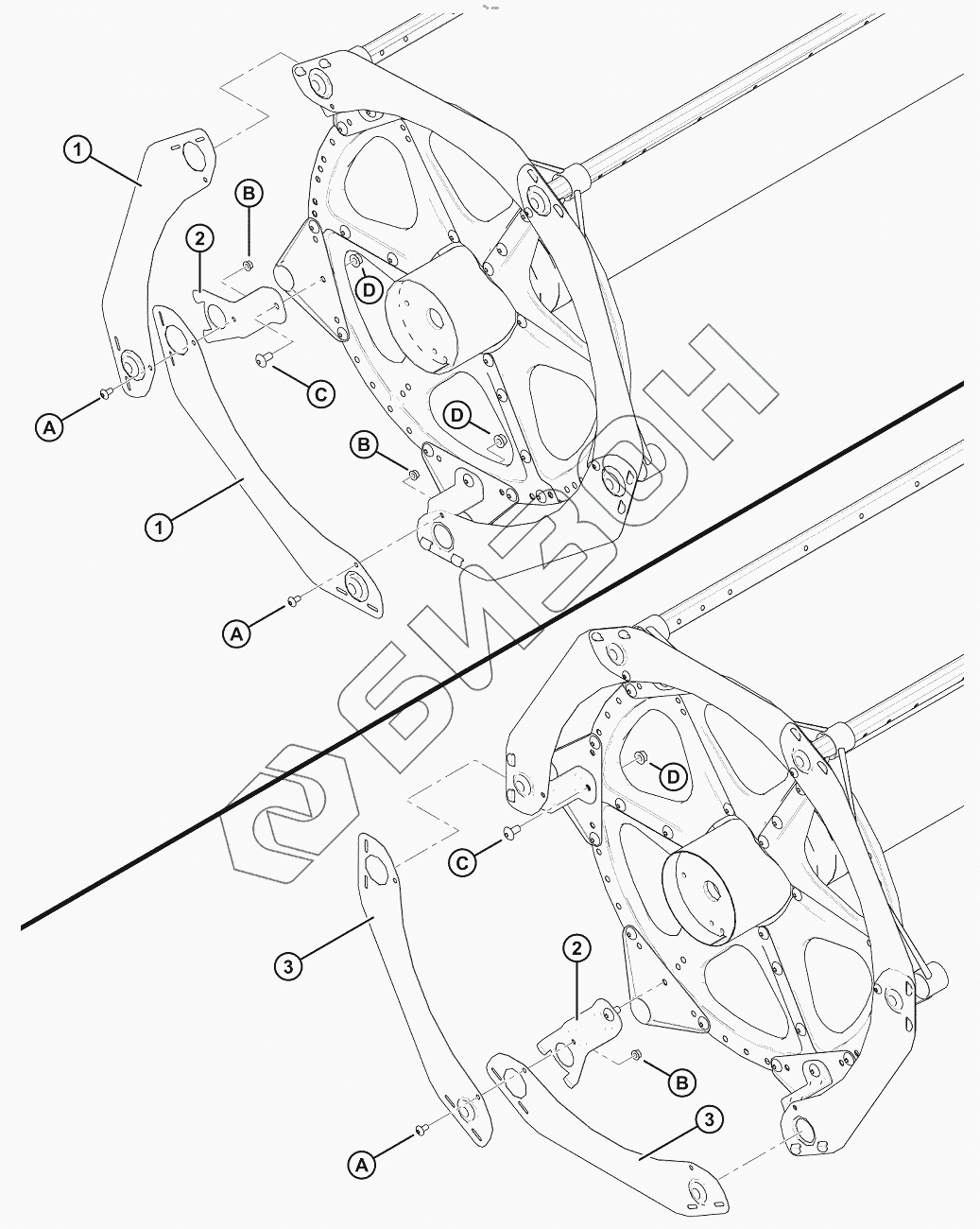 Графический каталог запасных частей к технике: MacDon-D65. Компоненты бокового щитка мотовила