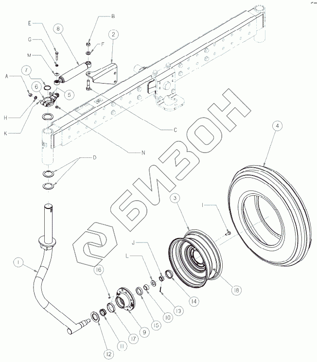 | 29 | 18916 | BOLT - 90° WHEEL 9/16 NF X 175 OL |