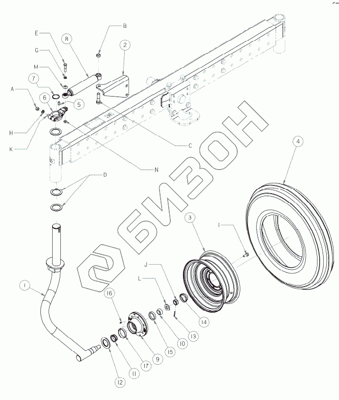 | 29 | 18916 | BOLT - 90° WHEEL 9/16 NF X 175 OL |