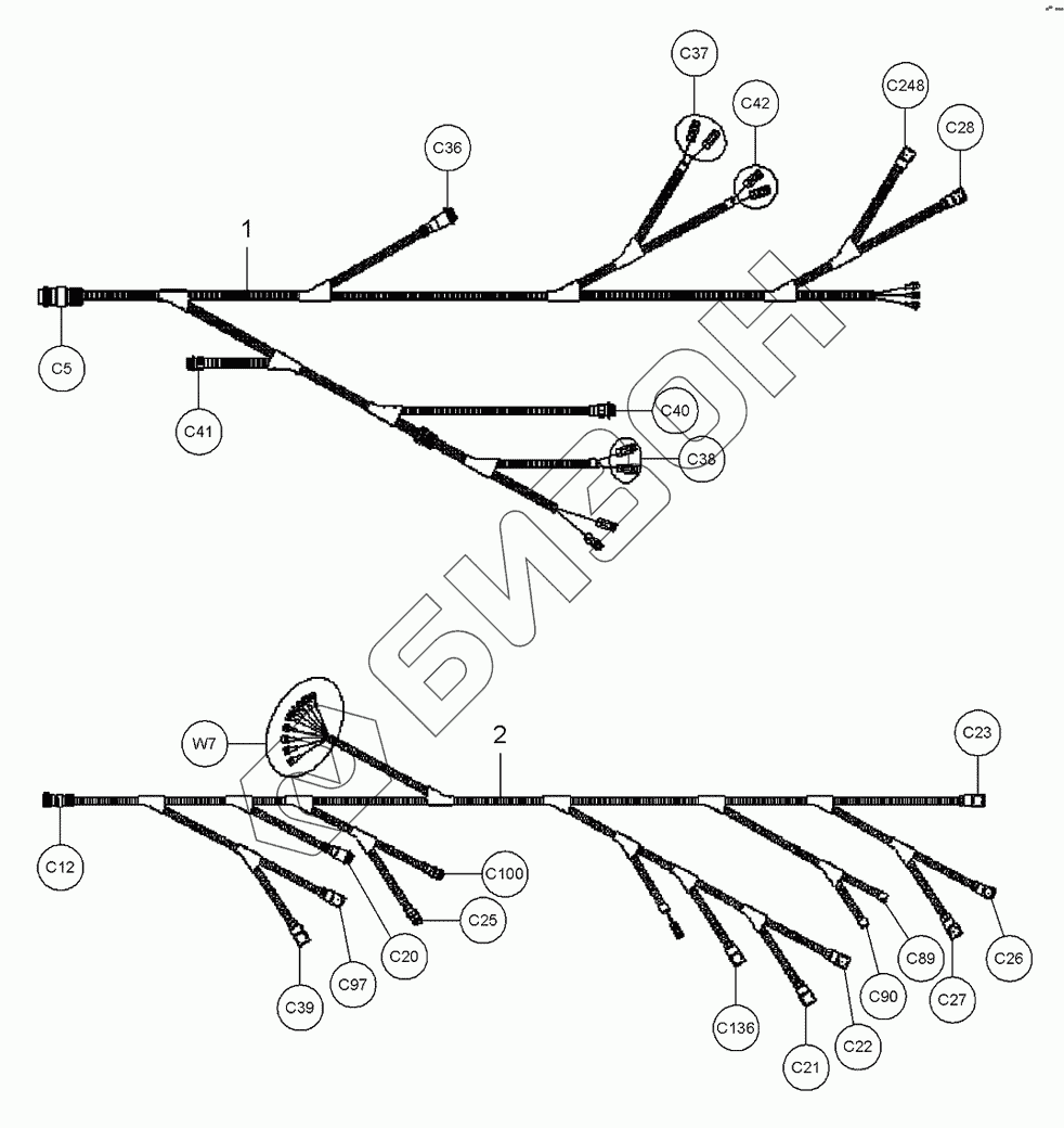 Графический каталог запасных частей к технике: Massey Ferguson Fend-8300/8350. Electrical Wiring Machine Harness