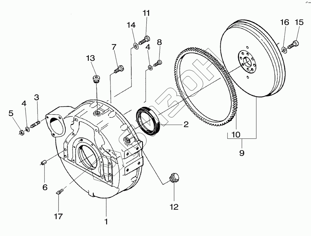 Графический каталог запасных частей к технике: Massey Ferguson Fend-8300/8350. Engine, Flywheel