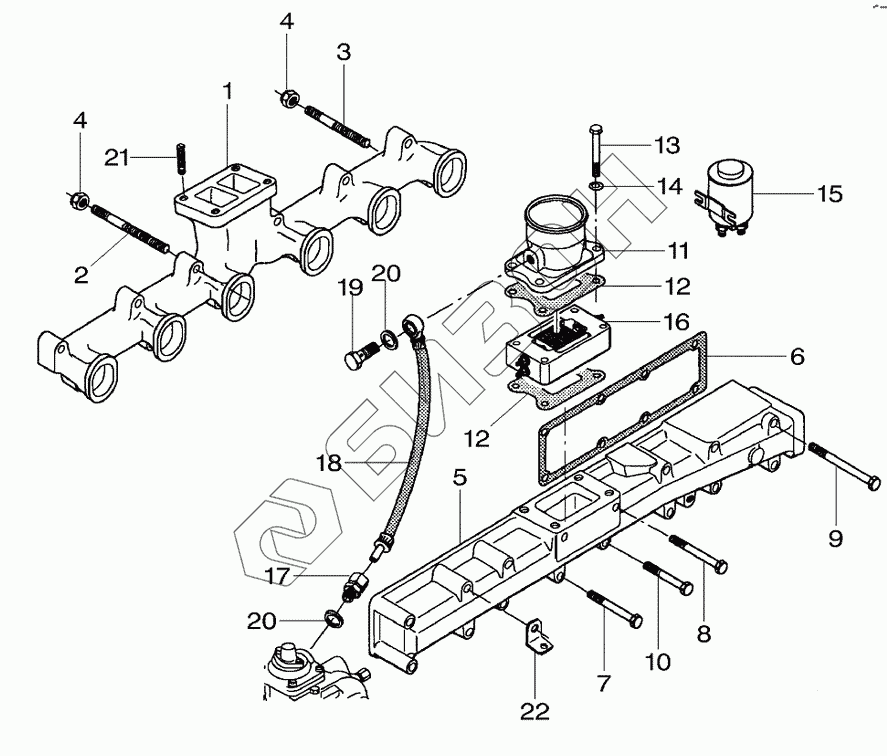 Графический каталог запасных частей к технике: Massey Ferguson Fend-8300/8350. Engine, Intake & Exhaust Manifold