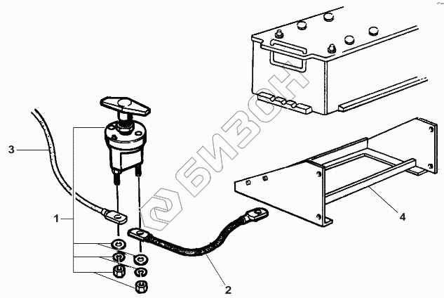 Графический каталог запасных частей к технике: Massey Ferguson MF-7244 Activa. Battery Disengaging Device