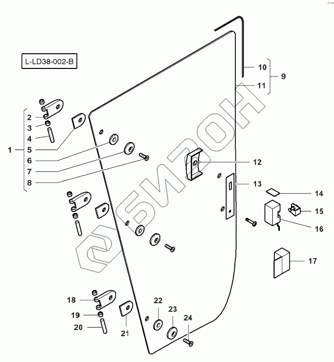 Графический каталог запасных частей к технике: Massey Ferguson MF-7244 Activa. Cab-Right Door
