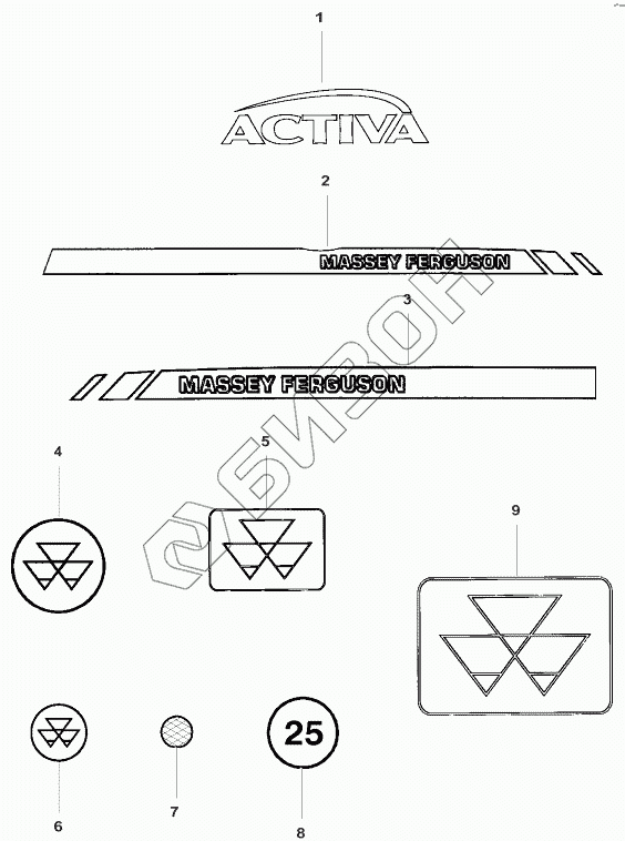 Графический каталог запасных частей к технике: Massey Ferguson MF-7244 Activa. Decals