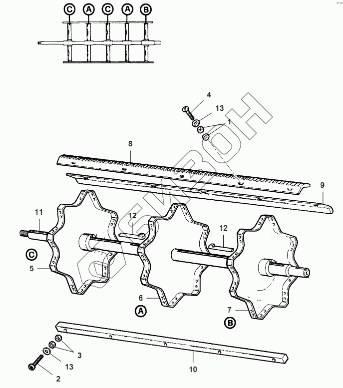 Графический каталог запасных частей к технике: Massey Ferguson MF-7244 Activa. Drum With Bars