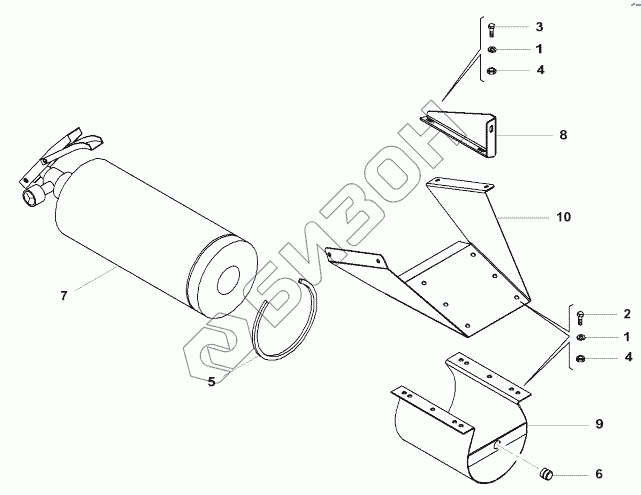 Графический каталог запасных частей к технике: Massey Ferguson MF-7244 Activa. Extinguisher Support
