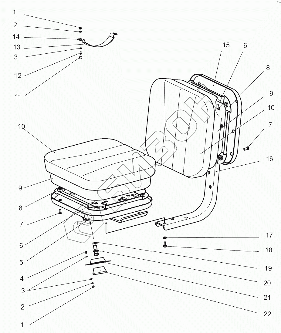 Графический каталог запасных частей к технике: МТЗ 1025/1025.2/1025.3. Сиденье дополнительное