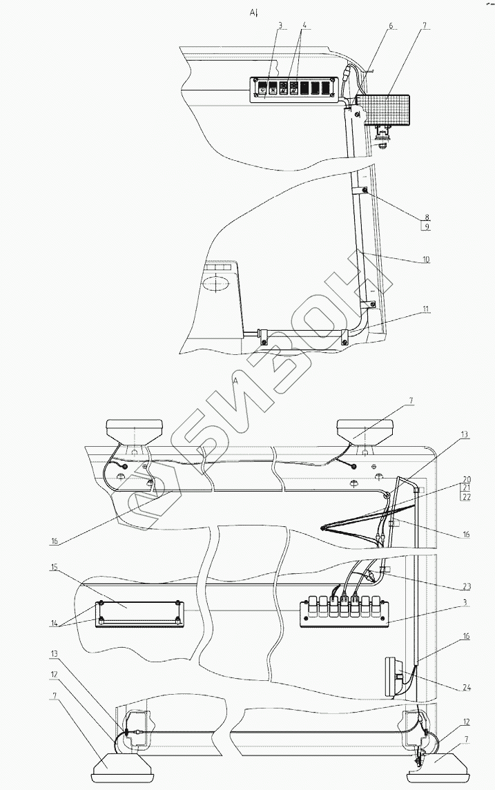 Графический каталог запасных частей к технике: МТЗ 1025.5. Установка фар рабочих