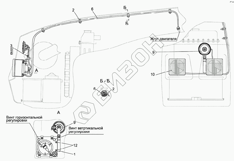 Графический каталог запасных частей к технике: МТЗ 1220. Установка фар дорожных