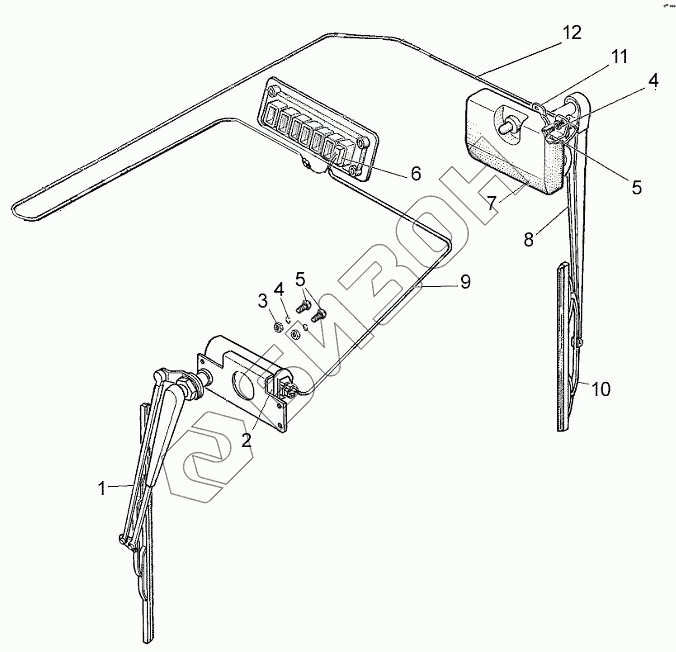 Графический каталог запасных частей к технике: МТЗ 1220.5. Установка стеклоочистителя