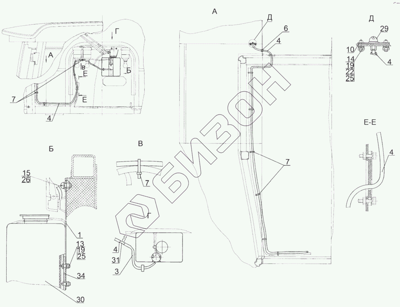 Графический каталог запасных частей к технике: МТЗ 1523.5. Установка стеклоомывателя
