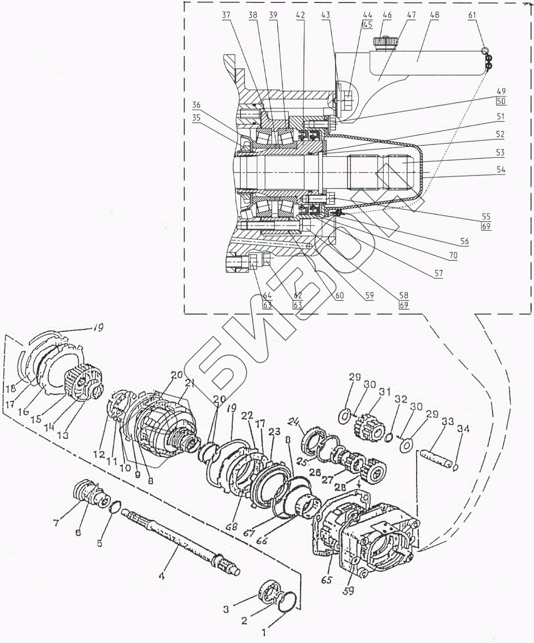 | 38 | 72-2308121 | Кольцо регулировочное В = 5,8 (подбираются при регулировке подшипников) |