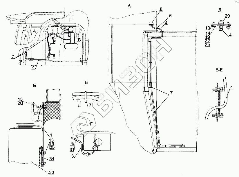 Графический каталог запасных частей к технике: МТЗ 2122.3/2122.4. Установка стеклоомывателя