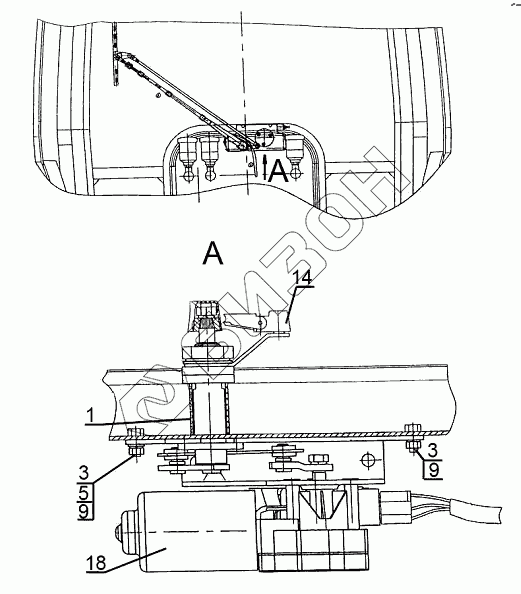 Графический каталог запасных частей к технике: МТЗ 3022ДЦ.1. Установка переднего стеклоочистителя