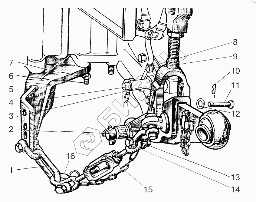 Графический каталог запасных частей к технике: МТЗ 800/900. Наружная блокировка нижних тяг