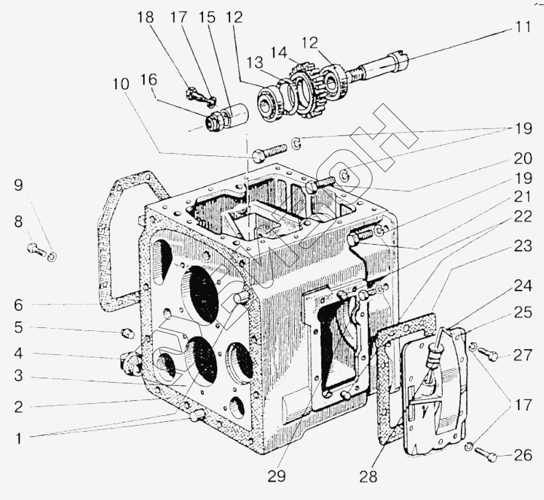| 14 | 52-1802095-Б | Шестерня промежуточная с кольцом и подшипником в сборе |