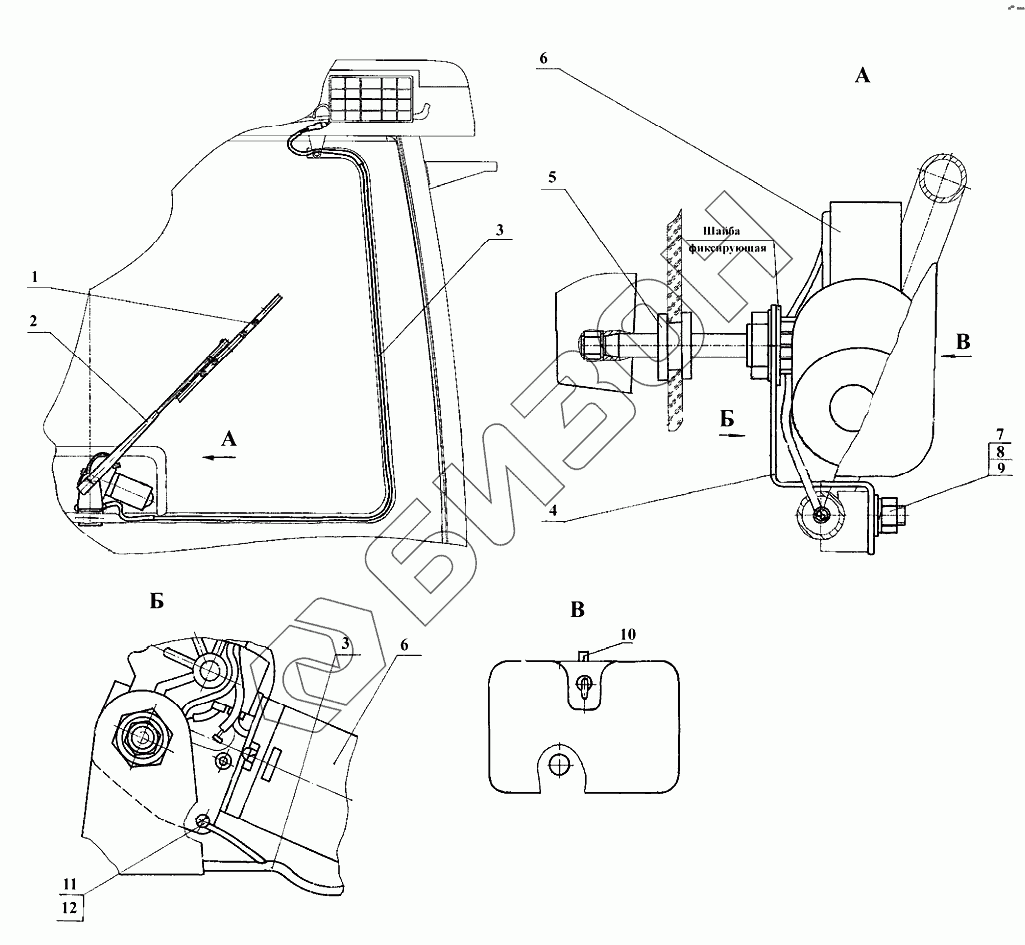 Графический каталог запасных частей к технике: МТЗ 922.3 / 922.4. Установка стеклоочистителя заднего