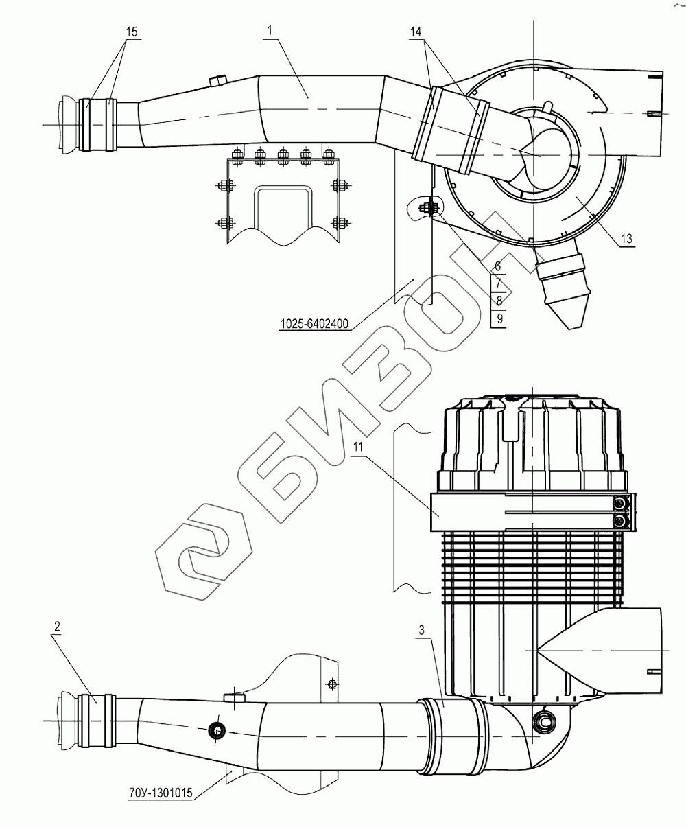 Графический каталог запасных частей к технике: МТЗ 922.5. Установка воздухоочистителя