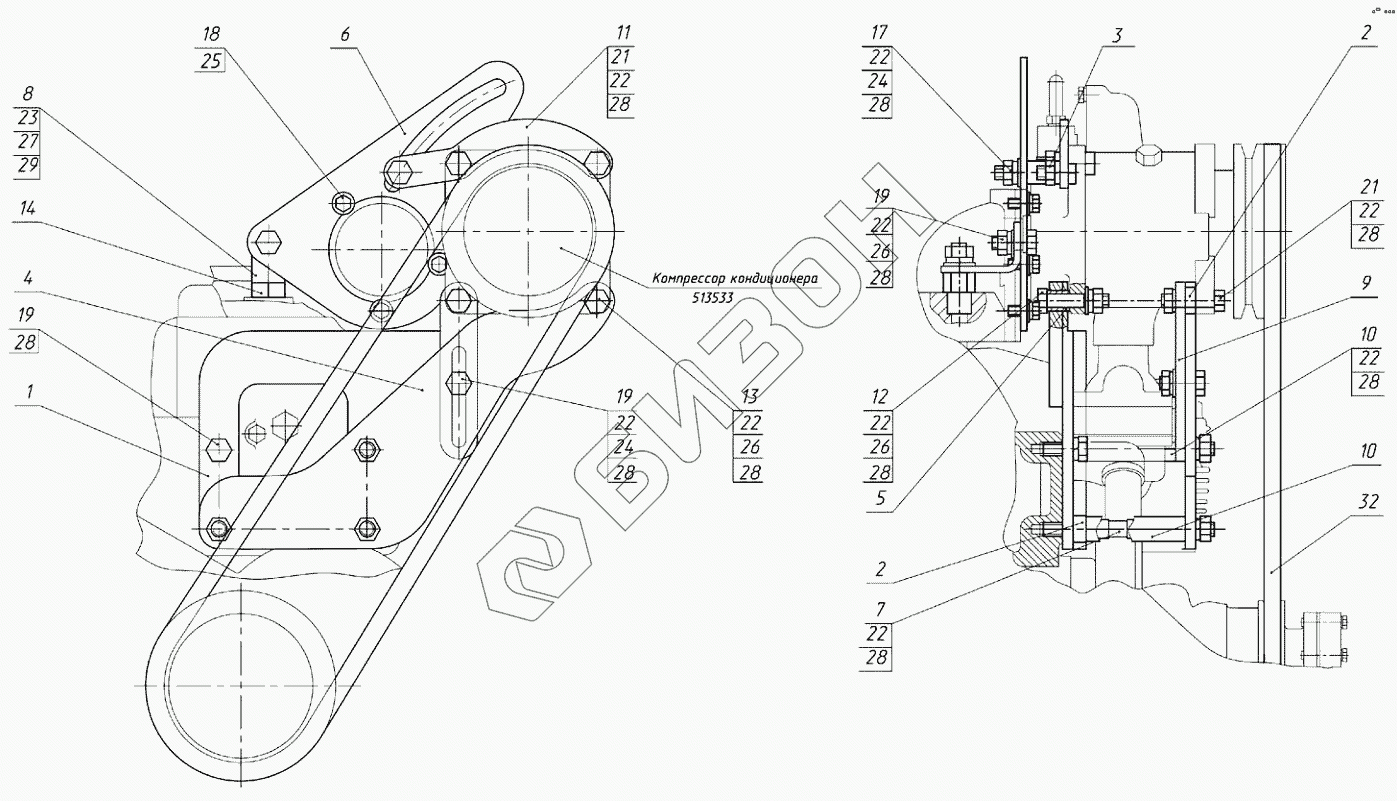 Графический каталог запасных частей к технике: МТЗ 923.4. Компрессор кондиционера 950-8114010