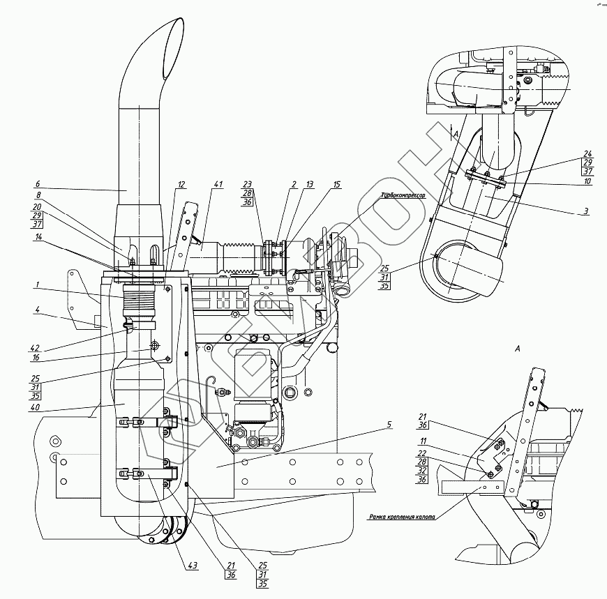 | 41 | Трубопровод | Выхлопной трубопровод со стандартным смесителем DNOX, с сильфоном |