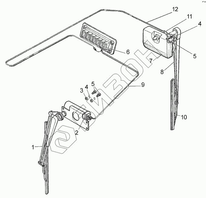 Графический каталог запасных частей к технике: МТЗ 952.5. Установка стеклоочистителя