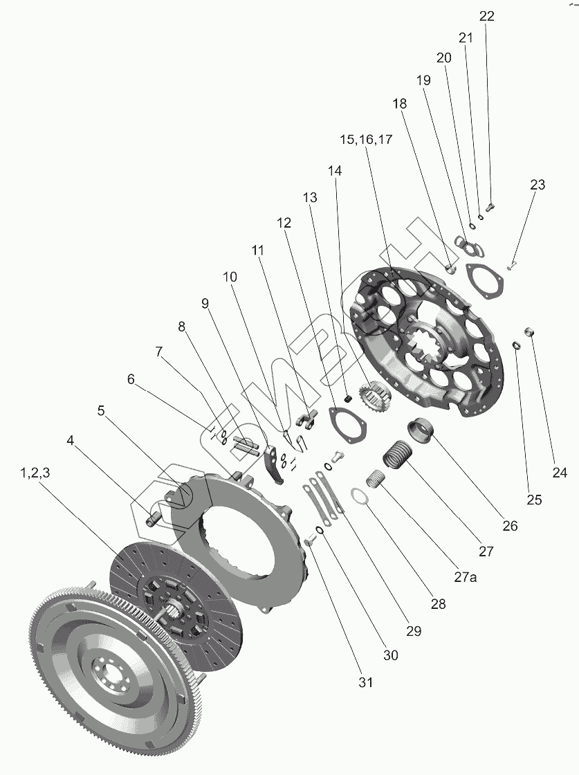Графический каталог запасных частей к технике: МТЗ 952.5. Установка сцепления 240-1005009-03